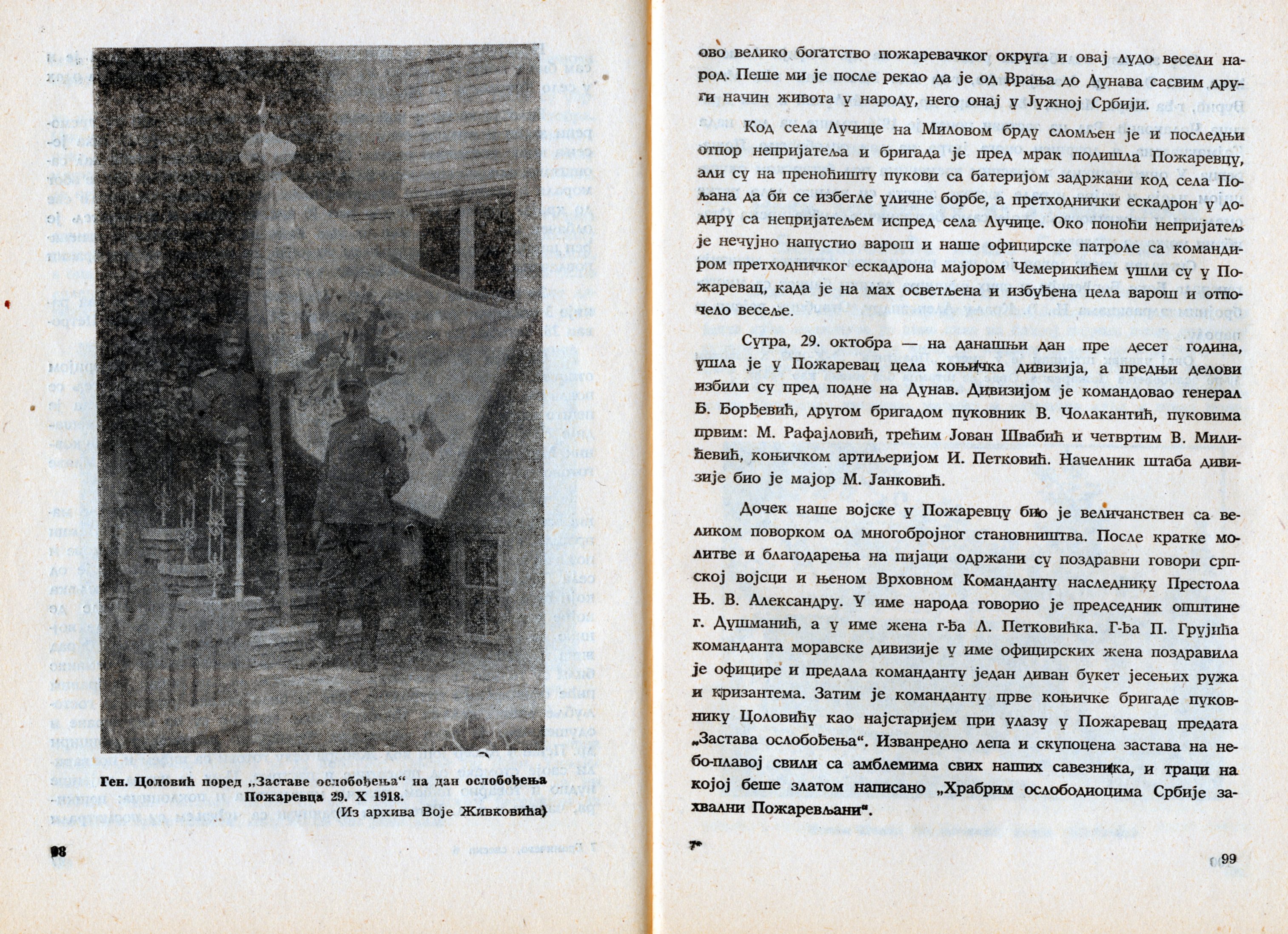 Prilog o oslobođenju Požarevca 1918. godine štampan u „Braničevu“ br. 6 iz 1964. godine.