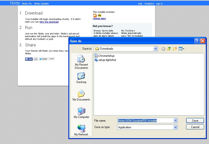 Nakon preuzimanja ovog instalera, ostaje da se on pokrene i da mu se prepusti da odradi svoj posao. Dakle, nema potrebe za kliktanjem na dugmiće „Next“, „OK“ i slično – Ninite će sve to uraditi potpuno automatski! Još jednu stvar je potrebno naglasiti: Ninite neće instalirati ponuđene reklamne tulbarove i slično e-smeće.