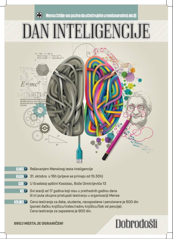 Testirajte svoju inteligenciju – Mensin test inteligencije u Gradskoj opštini Kostolac u subotu 31.10.2015. godine, u 16h (prijave do 15:30h).