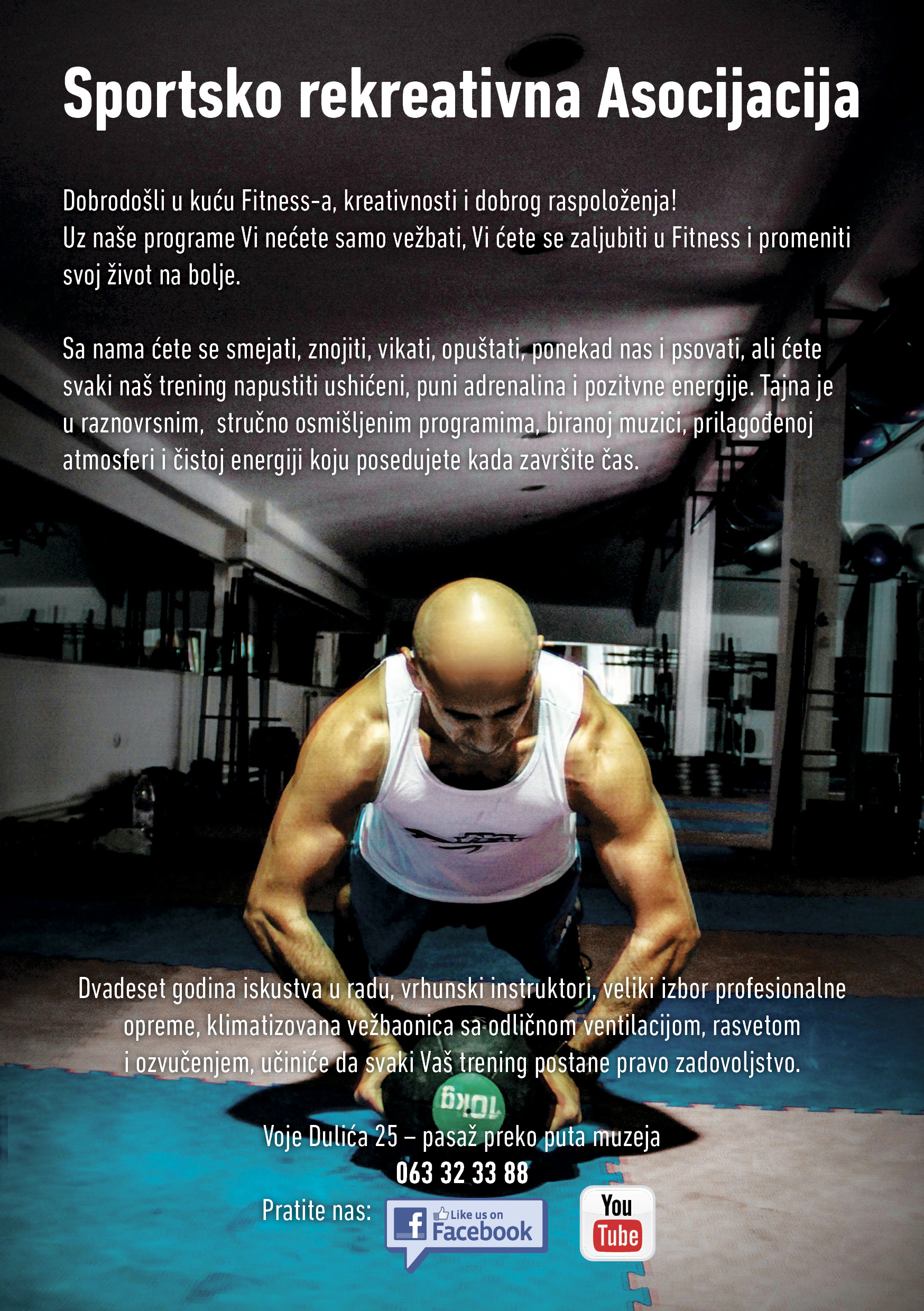 Sportsko rekreativna asocijacija vas poziva da dođete i vežbate sa njima. Pored vrhunskih treninga, sjajne atmosfere, fantastične energije i međusobne podrške, koje su glavna karakteristika njihovog rada, od njih uvek možete dobiti preporuke i savete u vezi adekvatne ishrane, oporavka ili suplementacije. U ponudi su: fitness, sportska škola, karate škola. Raspored treninga pogledajte ovde. Pored ove rekreacije, ne zaboravite, možete da se upišete i na treninge Realnog aikido-a u Požarevcu i Kostolcu. Moja deca već više godina treniraju ovu plemenitu borilačku veštinu. Za više informacija obratite se ovde ovde.