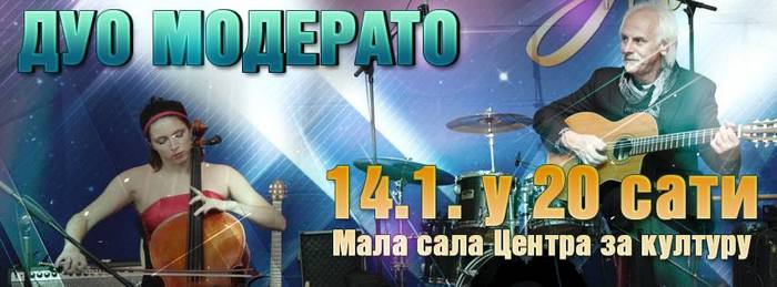 У Центру за културу Пожаревац у четвртак, 14. јануара биће одржан концерт музичког састава „Дуо Модерато“. Модерато је музички састав из Београда који је своју музичку концепцију засновао на обрадама и стилизацији етно музике, са ширег простора Балкана за гитару и виолончело. Почетак концерта је у 20 сати.