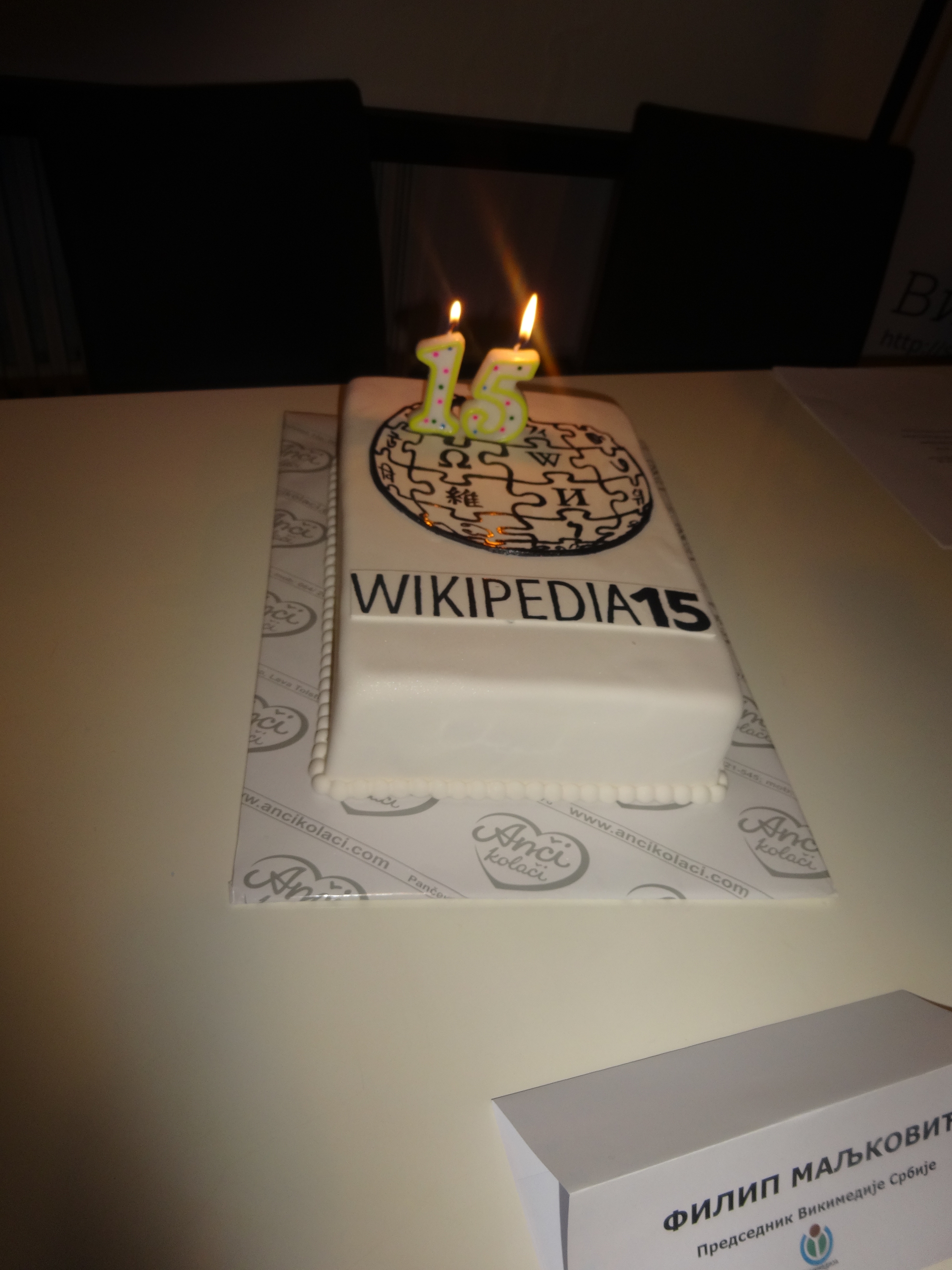 Википедијанци широм света прославили су пре неколико дана 15. година од настанка Википедије. Рођендан ове највеће енциклопедије у људској историји обележен је и у Србији. У просторијама Викимедије Србије окупили су се дугогодишњи уредници Википедије, али и вође других пројеката Викимедије Србије и Задужбине Викимедија, као и новинари и други гости који су дошли да заједнички прославе овај велики јубилеј.