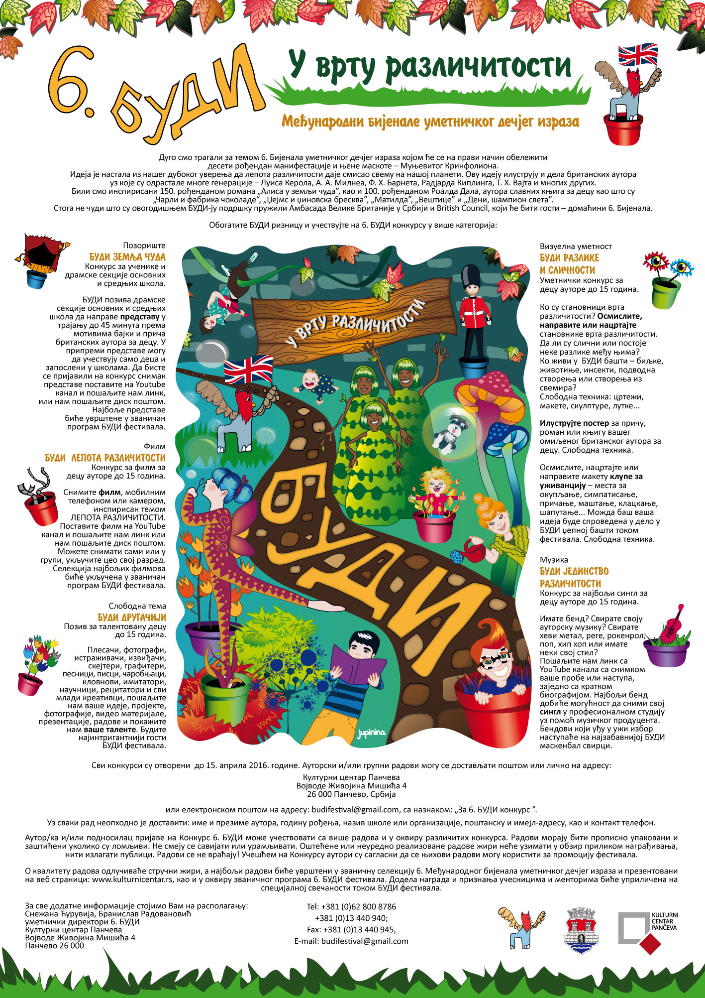 ili elektronskom poštom na adresu: budifestival@gmail.com, sa naznakom: „Za 6. BUDI konkurs”.