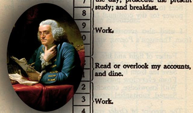 Bendžamin je tokom svog života svakoga dana uložio jedan sat u učenje. To je njegovo pravilo, svakoga radnog dana po jedan sat provesti dobijajući nova saznanja. To vreme je koristio na sledeći način: