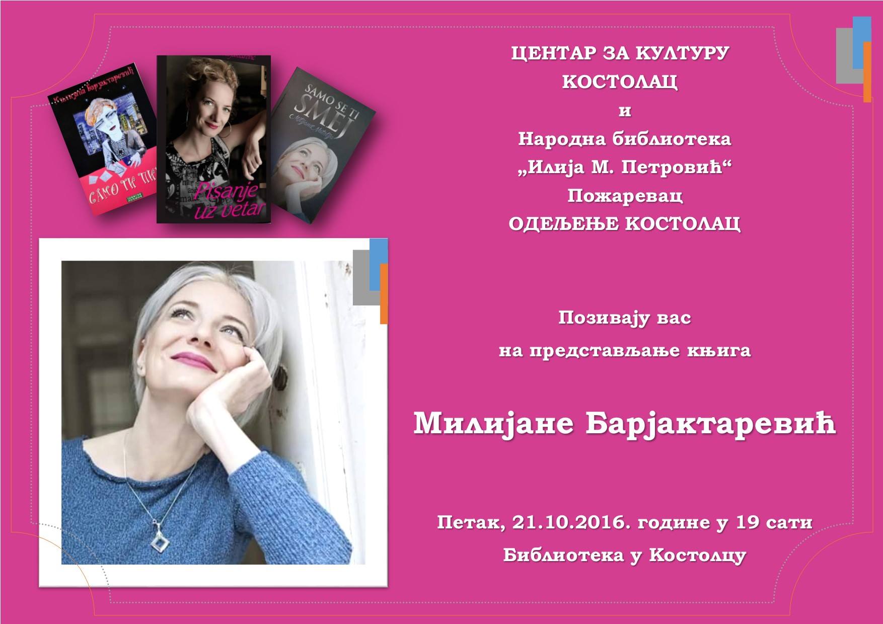 У петак 21. октобра у 19 сати у Библиотеци у Костолцу, огранку Народне библиотеке у Пожаревцу, представиће своје књиге наша позната блогерка, новинарка, књижевница и библиотекарка – Милијана Барјактаревић. Ако желите да проведете петак вече окружени позитивним и духовитим људима – дођите у Библиотеку!