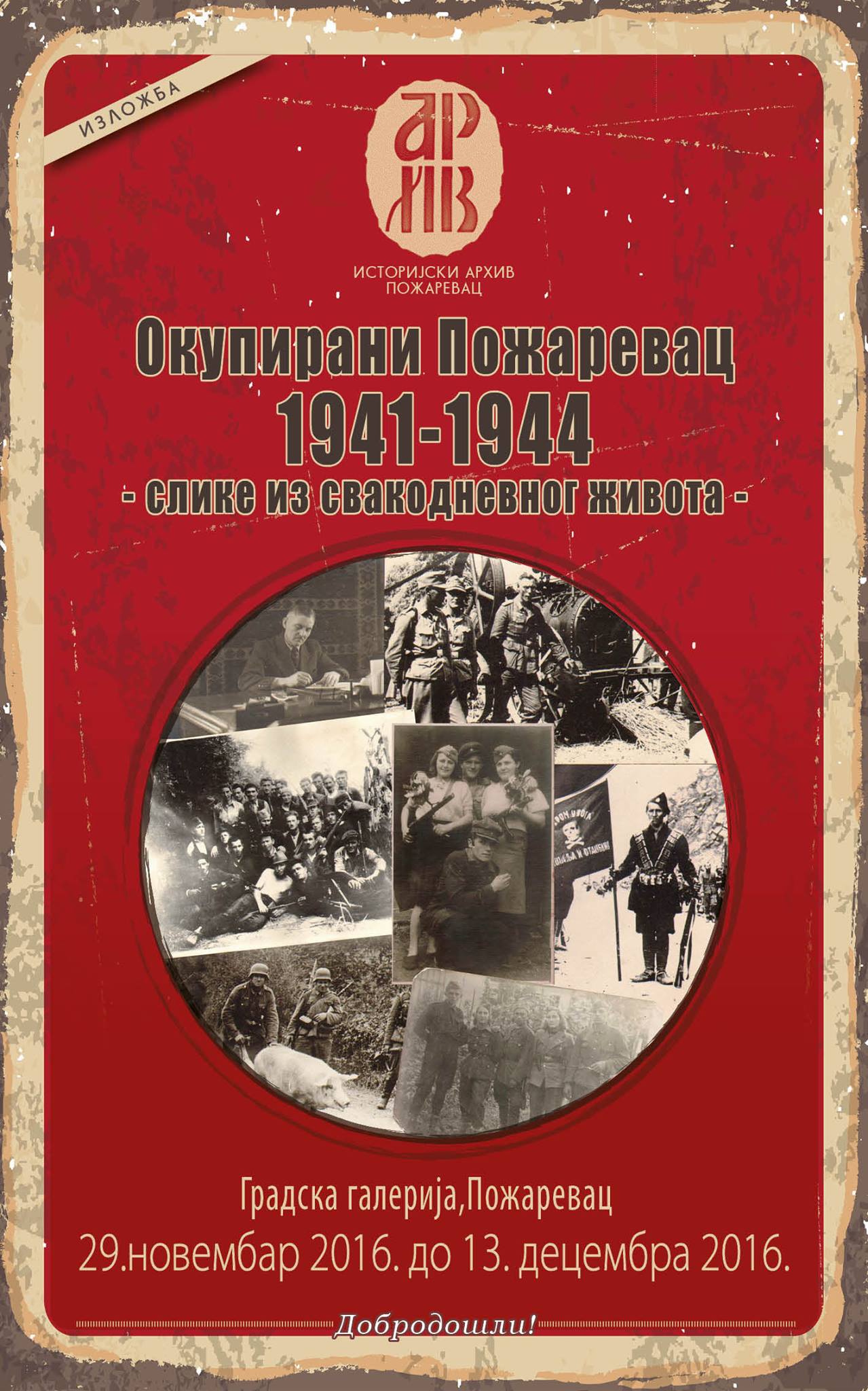 U slavu seni pobednika iza linija fronta Istorijski arhiv Požarevac vas poziva na otvaranje izložbe i predstavljanje publikacija Okupirani Požarevac 1941-1944 – slike iz svakodnevnog života. Datum: 29.11.2016. godine (utorak) u 19 časova. Mesto: Galerija Savremene umetnosti, Stari korzo 14, Požarevac. Dobro došli!