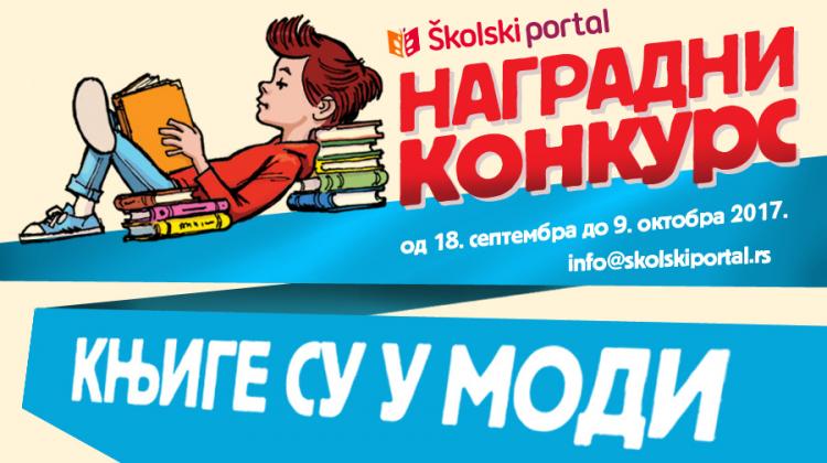 Od 18. septembra do 9. oktobra čitajte knjige, crtajte, pišite i učestvujte na konkursu koji promoviše čitanje. Školski portal vas poziva da učestvujete u nagradnom konkursu „Knjige su u modi“ i osvojite vredne nagrade! Konkurs traje od 18. septembra do 9. oktobra.