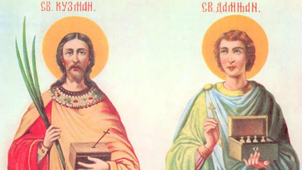 Današnji dan posvećen je Svetom Kozmi i Damjanu, braći po telu i duhu, rodom iz Rima, rođenim od oca neznabošca i majke hrišćanke. Napušteni od oca, odnegovala ih je majka Teodotija, koja ih je vaspitala kao prave hrišćane.