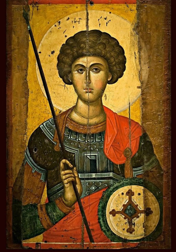 U srednjevekovnim pravoslavnim hramovima i manastirima on je u redu sa svetim ratnicima, borcima za hrišćanstvo, koje predvodi sveti arhangel Mihajlo, predstavnik sila dobra i čistote novozavetne vere.