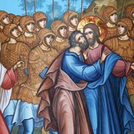 Kada je video da su se vojnici približili, odvojio se od ostalih, prišao Hristu, poželeo mu dobro jutro i poljubio ga. A Hristos ga je upitao : „Judo, zar celivom izdaješ Sina Čovečjeg?“ (Lk. 22,34).