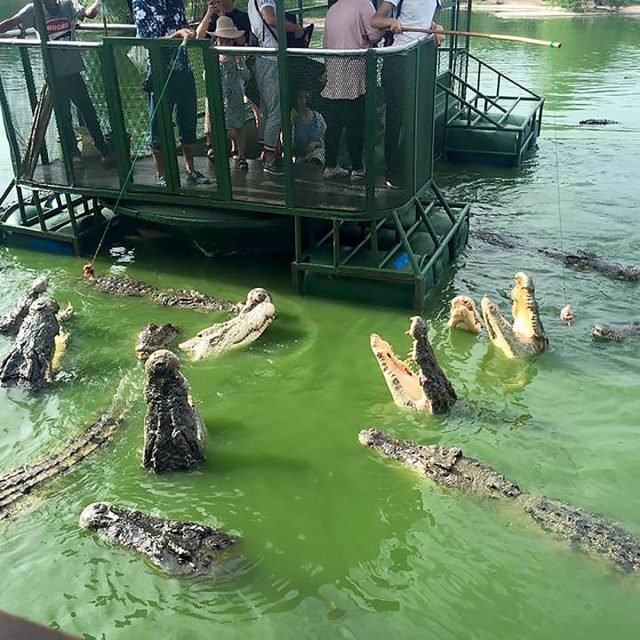 Приликом посете Фарми крокодила, група туриста нашла се на ограђеном платоу у средини базена препуног крокодила.