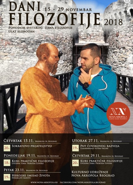 Ove godine Svetski dan filozofije proslavlja se 15. novembra. Tim povodom, Udruženje Nova Akropola organizuje u Beogradu Dane filozofije – niz predavanja posvećenih ideji čovekovog razvoja i buđenja njegovih humanih potencijala.