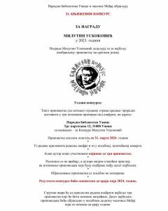 Народна библиотека Ужице и часопис Међај објављују 31. књижевни конкурс за награду Милутин Ускоковић у 2023. години. Награда Милутин Ускоковић додељује се за најбољу необјављену приповетку на српском језику.