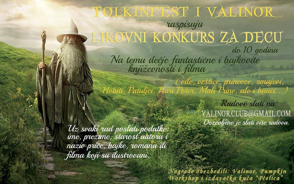 Povodom predstojećeg Tolkinfesta Udruženje „Valinor“ organizuje likovni konkurs za decu! Pravo učešća imaju svi mališani iz celog sveta do generacije koja će tokom 2016. napuniti deset godina. Tema konkursa su dečja fantastična i bajkovita književnost i filmovi (ali bez crtanih filmova, video igrica i precrtavanja).