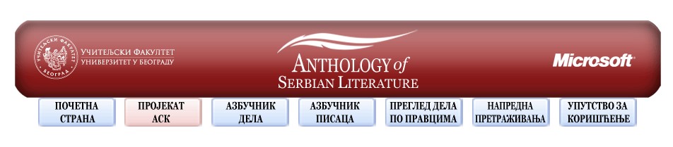 Projekat digitalizacije značajnih dela srpske književnosti Antologija srpske književnosti napravljen je sa ciljem da se zainteresovanim čitaocima širom sveta učine lako dostupnim kapitalna dela srpske književnosti. Ova digitalizovana biblioteka besplatno je dostupna svim građanima u Republici Srbiji i inostranstvu, i u funkciji je promocije književnih i kulturnih dobara u međunarodnim okvirima, kao i podizanja književne, opšte i digitalne pismenosti građana Republike Srbije. Odabir dela napravio je Učiteljski fakultet Univerziteta u Beogradu, a digitalizaciju je izvršio Majkrosoftov Centar za razvoj softvera u Beogradu, u okviru aktivnosti Majkrosoftovog programa „Partner u učenju“.