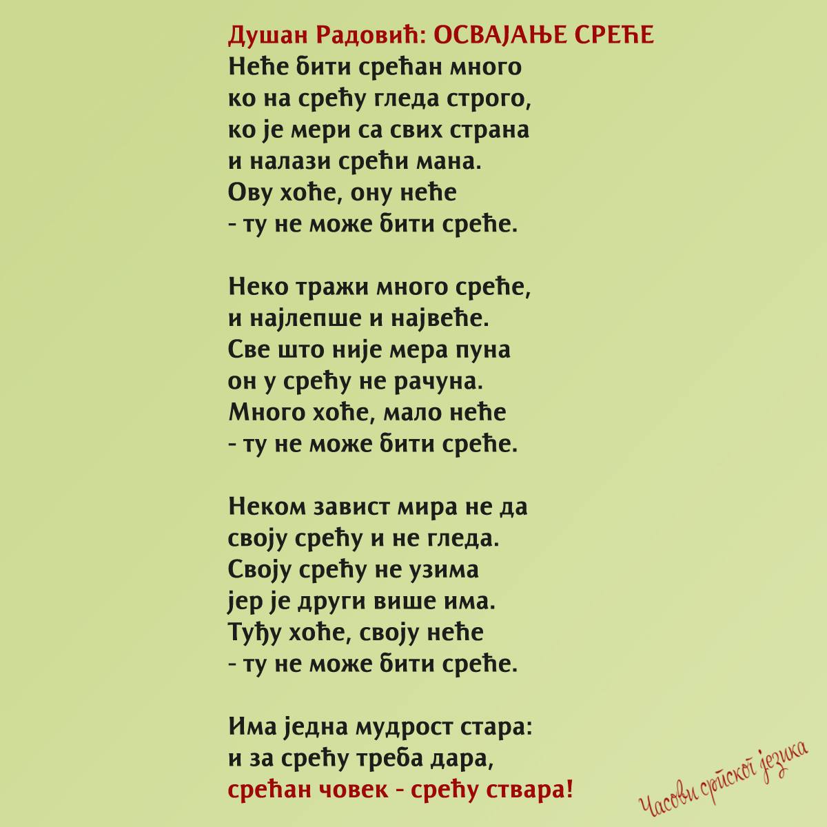 Hvala Tamari Matić Vujnović što me je podsetila na ovu pesmu. Svima treba povremeno da se podsete šta je sreća…